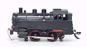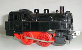 Neben den 3-Schienen Modellbahnen produzierte Zeuke eine Reihe von Spielzeugeisenbahnen mit Batterie- oder Uhrwerks-Versionen der T48 Bakelit-B-Tenderlokomotiven, und auch eine Reihe von Tinplate-Wagen. Die Batterie-Lokomotiven besaßen einen kleinen 4,5 V-Gleichstrommotor und glänzend rote PVC-Räder mit Haftreifen (das war ansprechender als die braunen Phenoplast-Räder der 3-Schienen- und Uhrwerksversionen). Die einfachen Hakenkupplungen waren mit den firmeneigenen Automatikkupplungen nicht kompatibel, und die Wagen besaßen keine Puffer. Obwohl die Lokomotiven über einen Rückwärtsgang verfügten, war die fehlende Frontkupplung an einer Tendermaschine enttäuschend. Als letzte Spur Null-Neuheit wurde im 1961/62er Katalog die batteriebetriebene Kabinenlokomotive “B 60” vorgestellt, in zwei Ausführungen als Diesel- oder E-Lok mit Stromabnehmer. Nur wenige dieser Lokomotiven wurden verkauft, und da die dünnen Plastgehäuse schnell zerbrachen, dürften nur sehr wenige überlebt haben. |