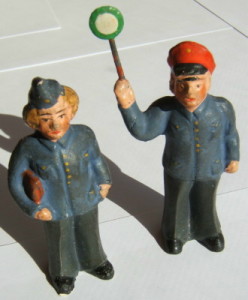 Diese und die folgenden Figuren haben Jahr für Jahr ihren Dienst bei meiner Zeuke-Bahn versehen. Mitfahren konnten sie nie, denn sie waren leider viel zu groß!